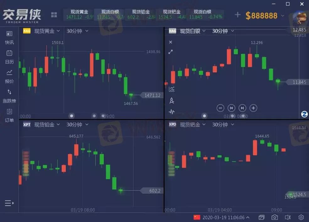 周四11:02,现货黄金下破1470美元/盎司,日内跌1% ,此前早盘开盘一度涨回1500美元上方;现货白银日内跌幅超1%,此前一度涨逾2%。现货钯金跌幅扩大至5%,跌破1500美元;现货铂金下跌超3%。