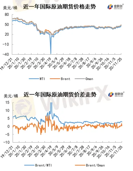 本周(11.19-11.25),市场等待11月30日欧佩克例行大会和12月1日欧佩克及其减产同盟国全体会议,普遍期待欧佩克及其减产同盟国将当前的减产数额延长到明年。三位接近欧佩克及其减产同盟国的消息人士表示,尽管油价上涨,由欧佩克和包括俄罗斯在内的盟国组成的减产同盟正倾向于推迟明年初增产计划。23日,美国总务管理局已经通知拜登团队正式开始政府过渡进程,美国联邦政府各部门也在当天晚上接到邮件,确认拜登当选总统。美国制药公司辉瑞表示,已经向美国食品药品监督管理局递交了关于新冠疫苗的紧急使用授权,如申请通过,美国最早将于12月开始限量投放疫苗。23日,也门与伊朗结盟的胡塞组织表示,他们发射了一枚导弹击中沙特阿拉伯西部城市吉达的沙特阿美公司基地,然而阿美石油公司的主要石油设施在东部,因此对市场影响有限。