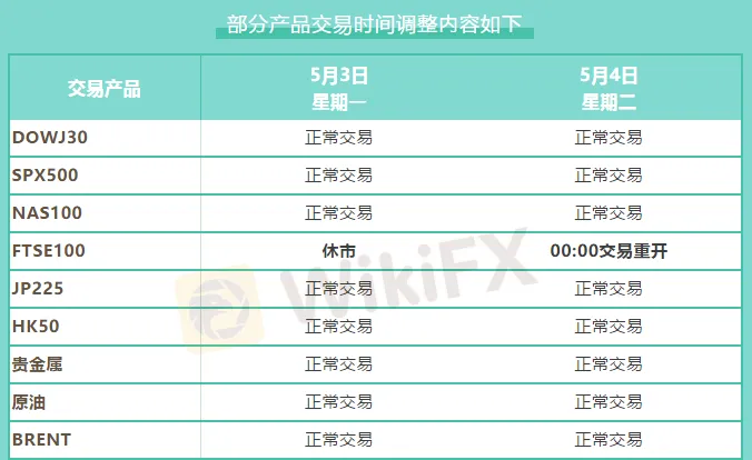 2021年5月即将来临,受节日及其他影响,IFS Markets部分产品交易时间将做出调整。