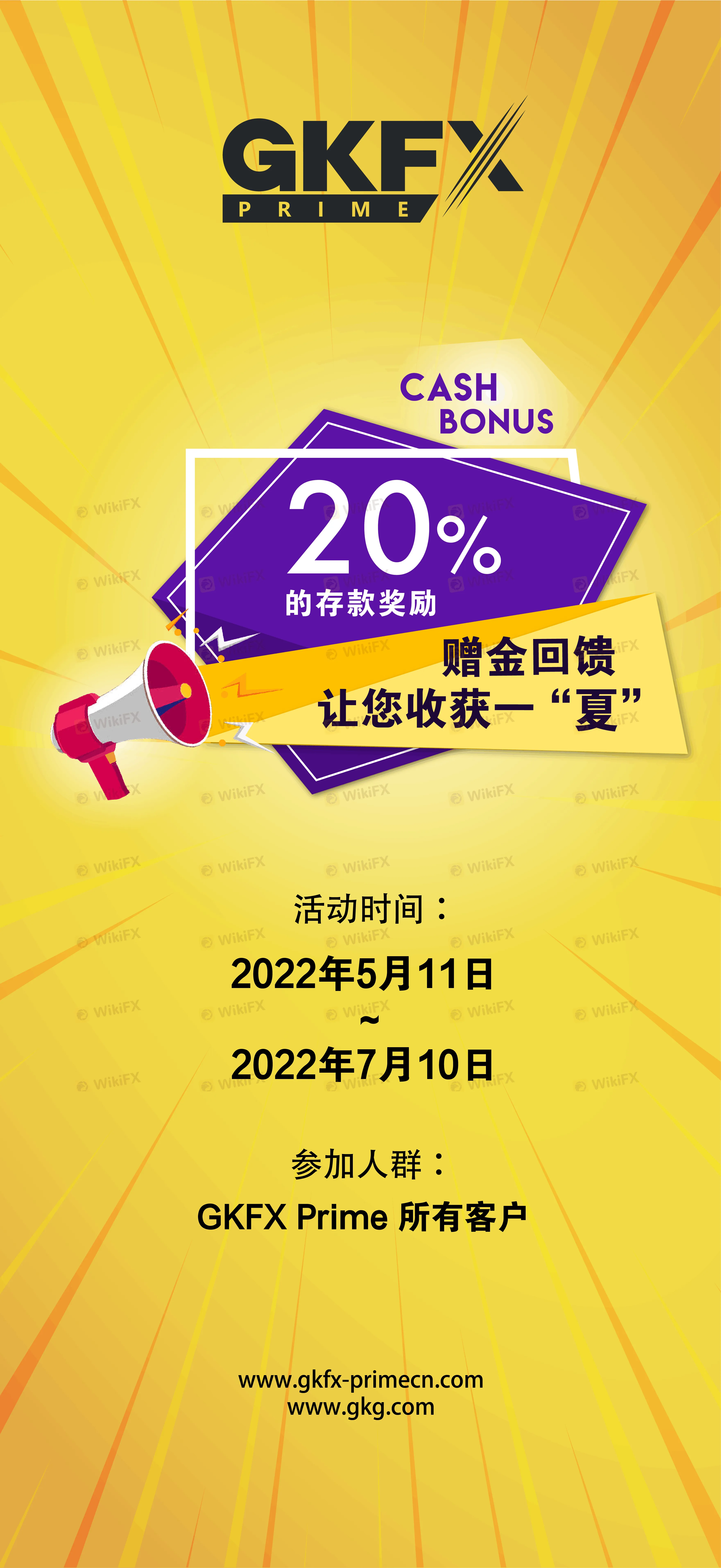 摘要:20%的存款奖励 没有最低入金要求 参加人群:GKFX Prime所有的新老客户 活动时间:2022年5月11日—2022年7月10日