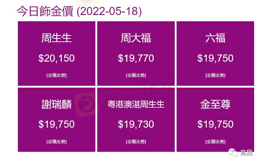 2022年5月18日饰金报价