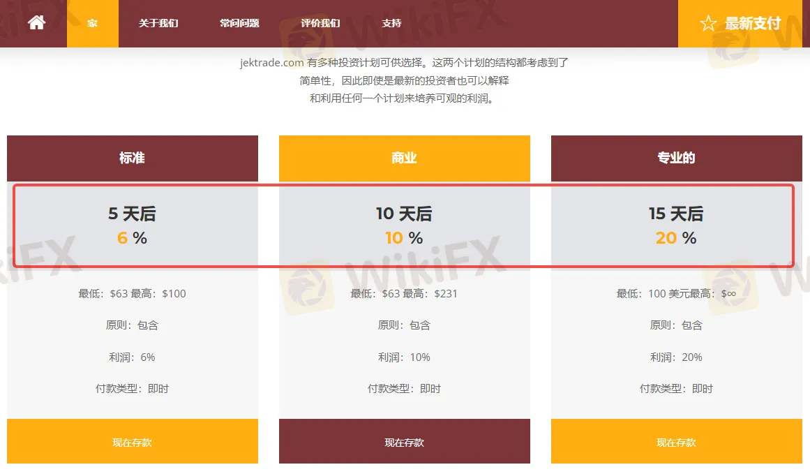 例如,一家投资平台JEK TRADE(https://www.jektrade.com/) 推出多种投资计划可供选择。
