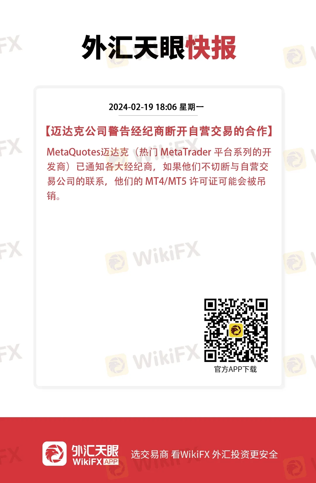 摘要:MetaQuotes迈达克(热门 MetaTrader 平台系列的开发商)已通知各大经纪商,如果他们不切断与自营交易公司的联系,他们的 MT4/MT5 许可证可能会被吊销。