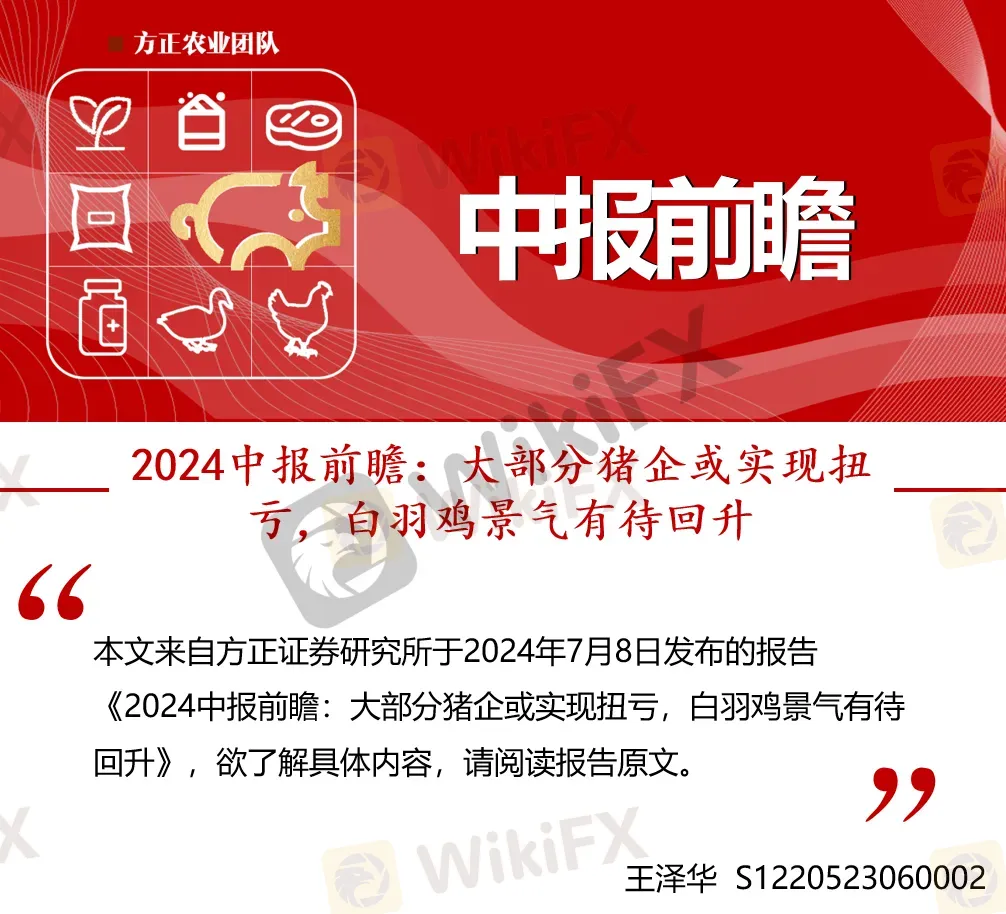 【方正农业|2024中报前瞻】大部分猪企或实现扭亏,白羽鸡景气有待回升