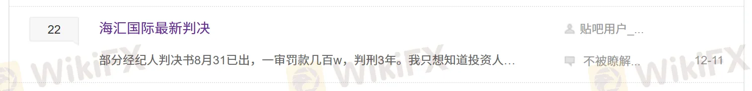 看到有人在贴吧发帖说海汇国际“部分经纪人判决书8月31日已出,一审罚款几百万,判刑3年”。顿时我就精神了,逐一去找相关的判例,然而,并没有。