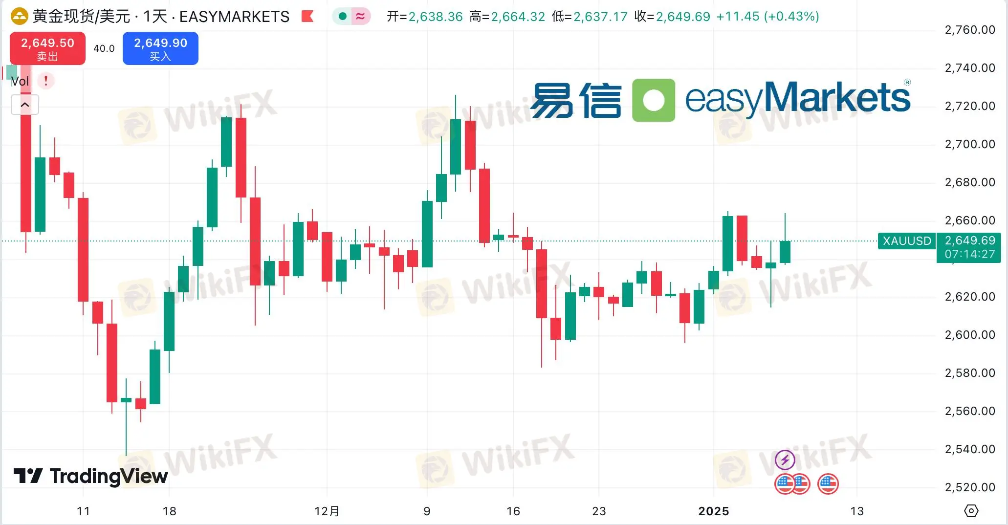 现货黄金因美元指数的波动呈现先涨后跌的走势,最高触及2664.20美元/盎司,最终收涨0.48%,报2648.19美元/盎司。现货白银收涨0.30%,报30.03美元/盎司。