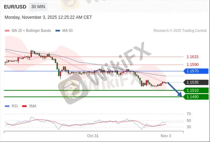 当日内期待1.1510,转折点在1.1570。