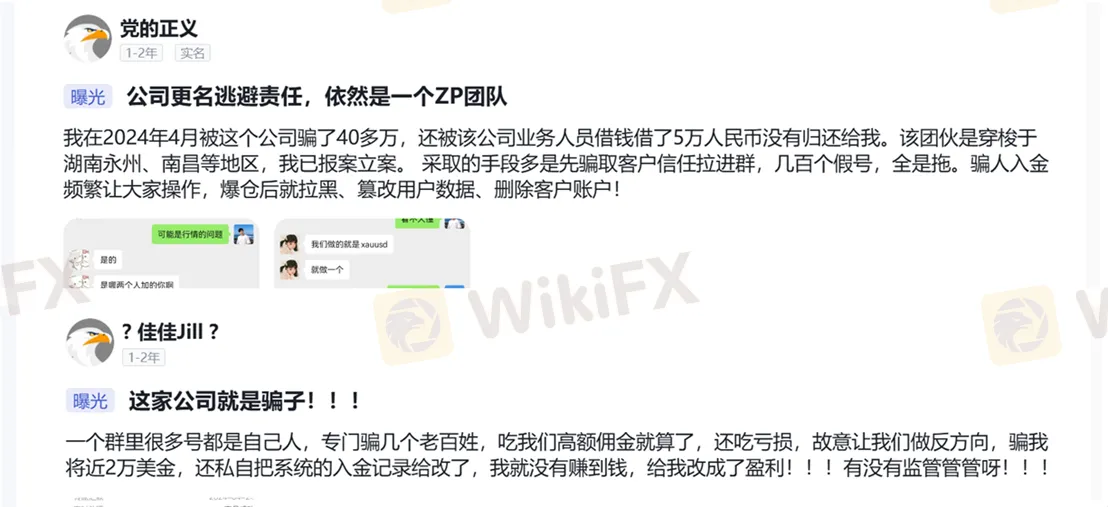 另一位“XX正义”:“我在2024年4月被这个公司骗了40多万,还被该公司业务人员借钱借了5万人民币没有归还给我。该团伙是穿梭于湖南永州、南昌等地区,我已报案立案。”