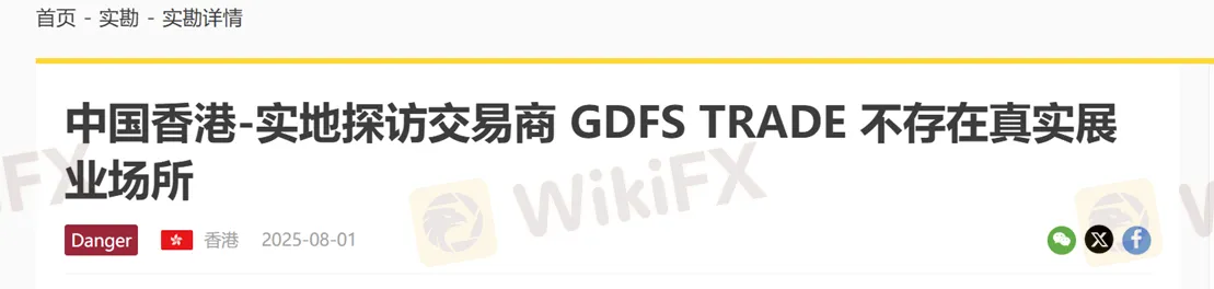 GDFS TRADE曾公开的实际经营地址在香港,但天眼实勘团队实勘后确认交易商 GDFS TRADE 不存在真实展业场所。