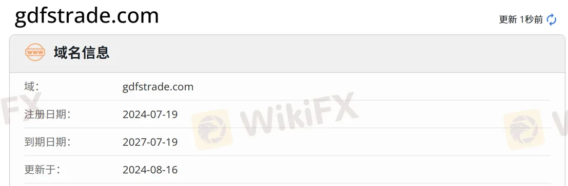 网站虽然与监管机构登记的联系邮箱域名相似,但并不是同一个域名。因此无法确认监管信息和GDFS TRAD平台的关联性。