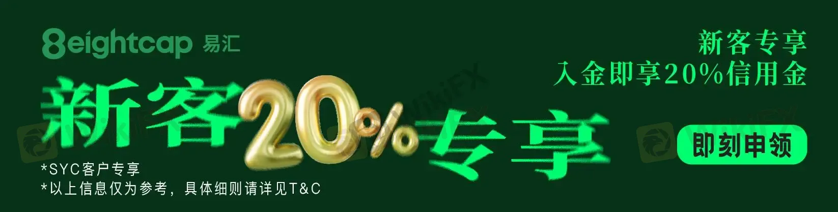 Eightcap易汇新客入金,立享 20% 交易信用金,助您放大交易实力!