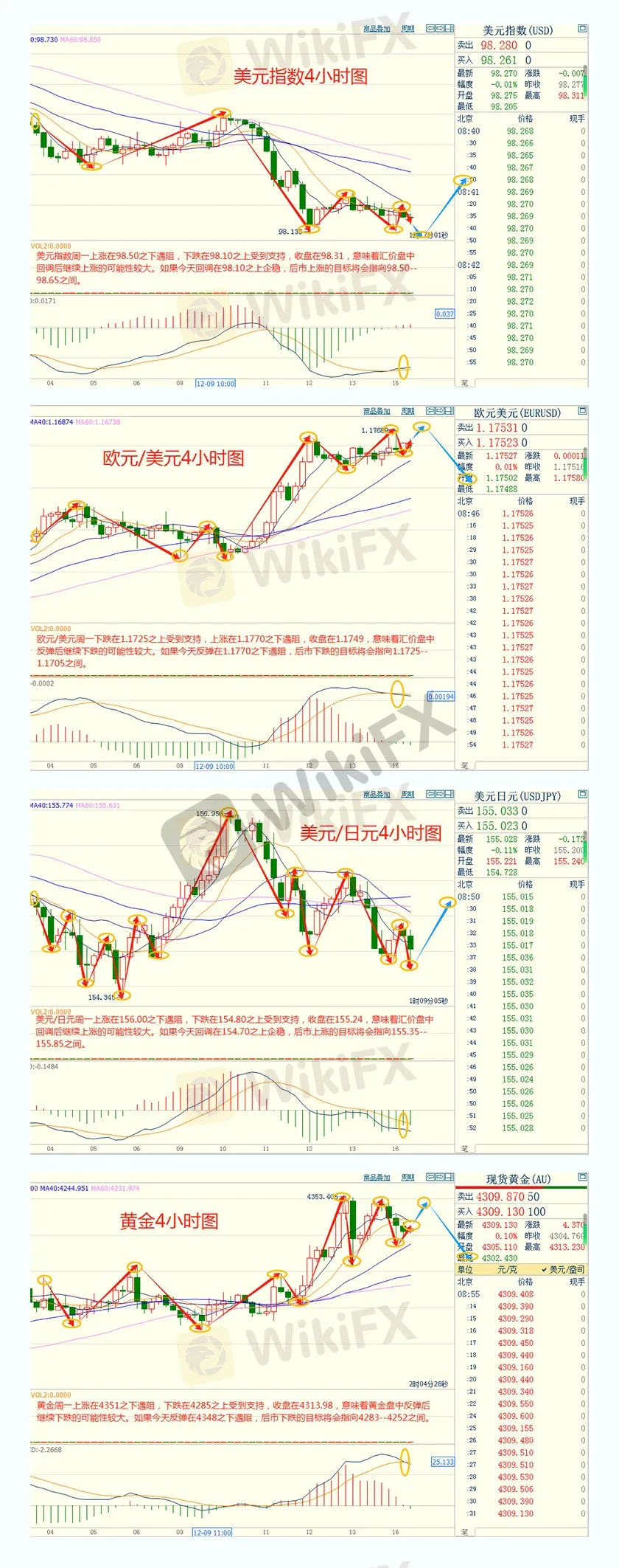 摘要:CWGMarkets市场资讯2025年12月16日(周二):汇讯摘要:周一,美元指数震荡下行,盘中一度跌近98关口,随后收复部分失地,最终收跌0.13%,报98.28;基准的10年期美债收益率最终收报4.181%,对美联储政策利率敏感的2年期美债收益率收报3.516%。现货黄金在本周一(10月15日)经历了冲高回落的剧烈波动,由于市场对美联储降息的预期以及美元汇率的变动,现货黄金一度逼近4350美