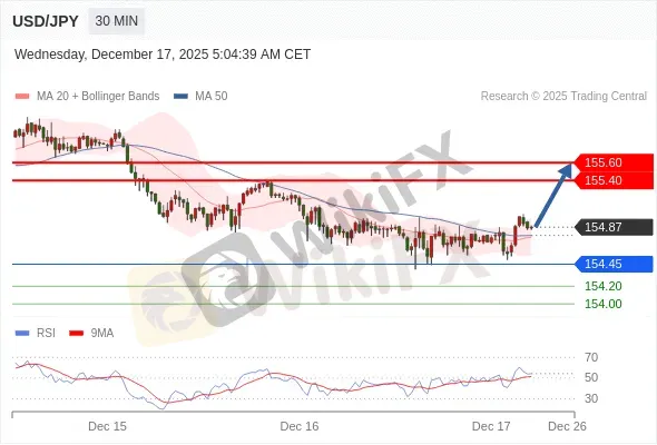 在 154.45 之上,看涨,目标价位为 155.40 ,然后为 155.60。