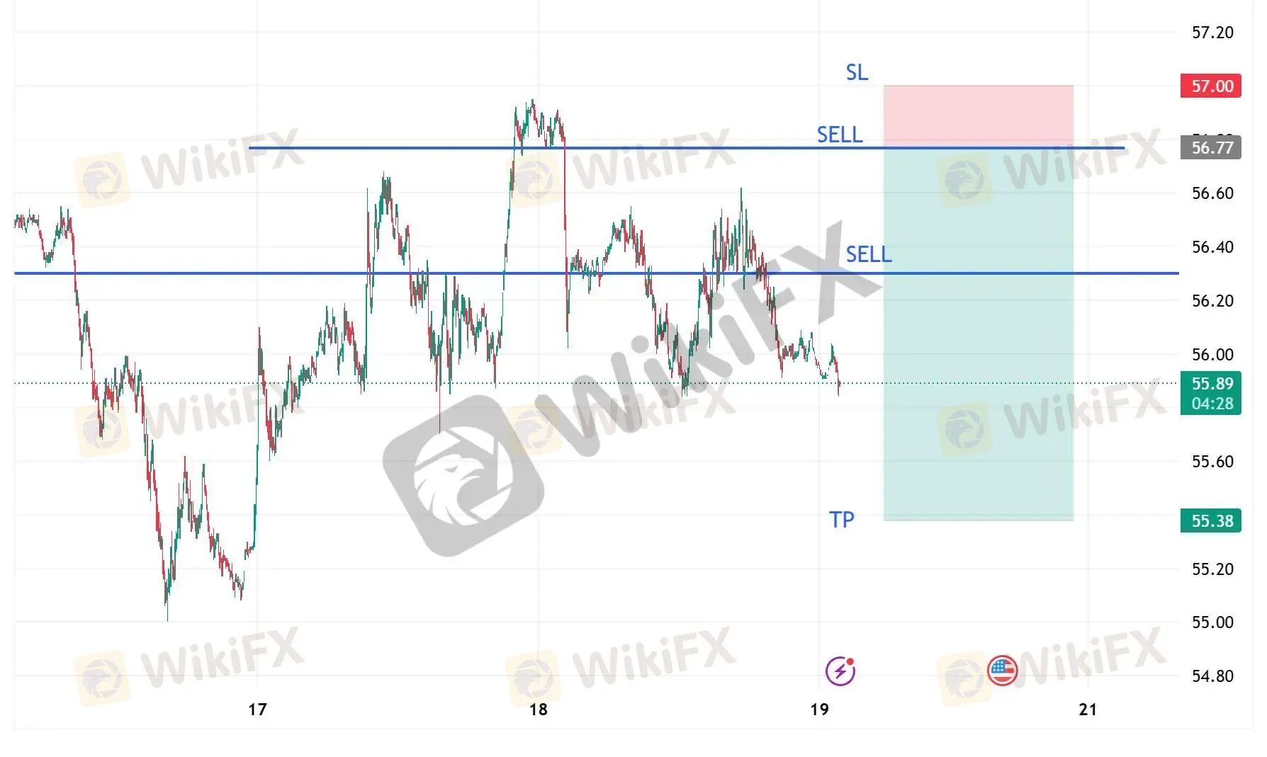 当日目标区间:回涨至56.7以上继续做空,带好止损。