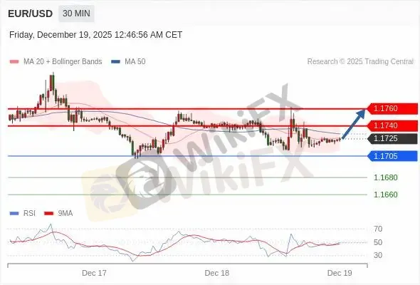 交易策略: 在 1.1705 之上,看涨,目标价位为 1.1740 ,然后为 1.1760。