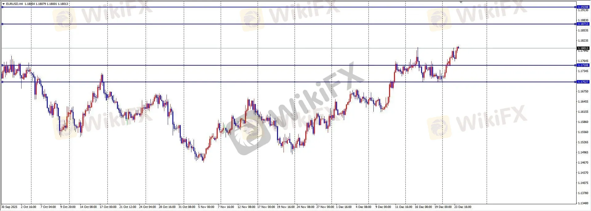 周二,欧元/美元受欧洲央行官员言论短期安抚,价格一度测试 1.180 后回落,最终于 1.1788 附近整理,全日波幅约 52 点,日线收带上影小阳线。美国第三季度实际 GDP 年化季率初值录得 4.3%,强劲数据强化了美联储短期维持利率不变的预期。ETO Markets 认为,市场仍在权衡欧美政策前景,后市需关注欧洲政策动向及假期流动性变化。