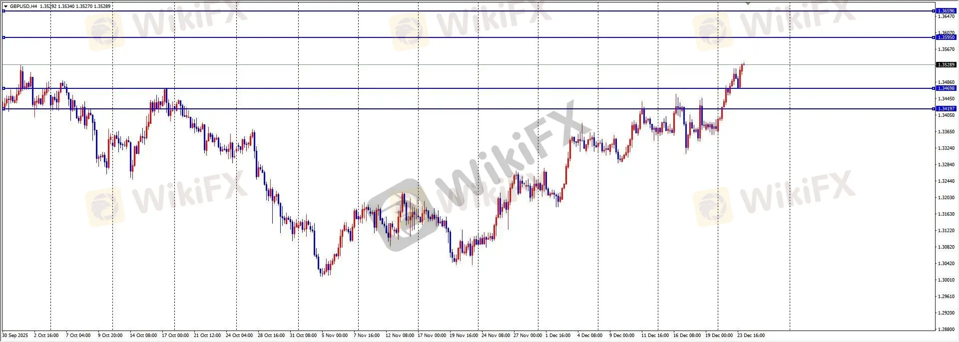 周二,英镑/美元延续上行,最高触及 1.3524 后整理,全日波幅约 71 点,日线收带上下影小阳线。在市场缺乏英国数据指引下,走势受风险情绪驱动。美国 GDP 数据表现强劲,但未改变市场对 2026 年降息的预期。ETO Markets 提示,全球经济逆风及英国央行未来宽松预期可能限制英镑上行空间,需关注英国政策动向。