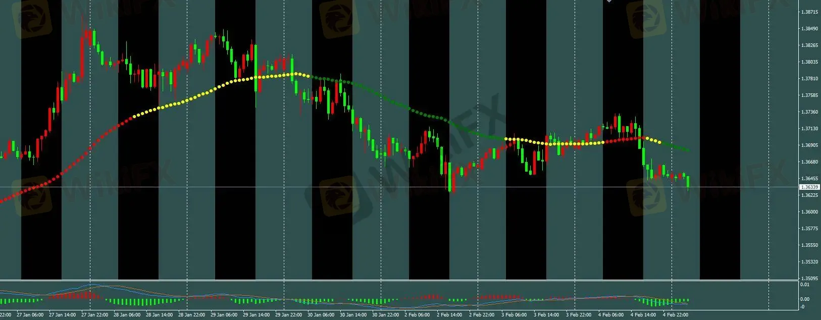 H1 趋势线颜色维持黄色,前期 1.1944 附近空单已达成盈利。日内可参考 M5 综合模型进行短线交易。