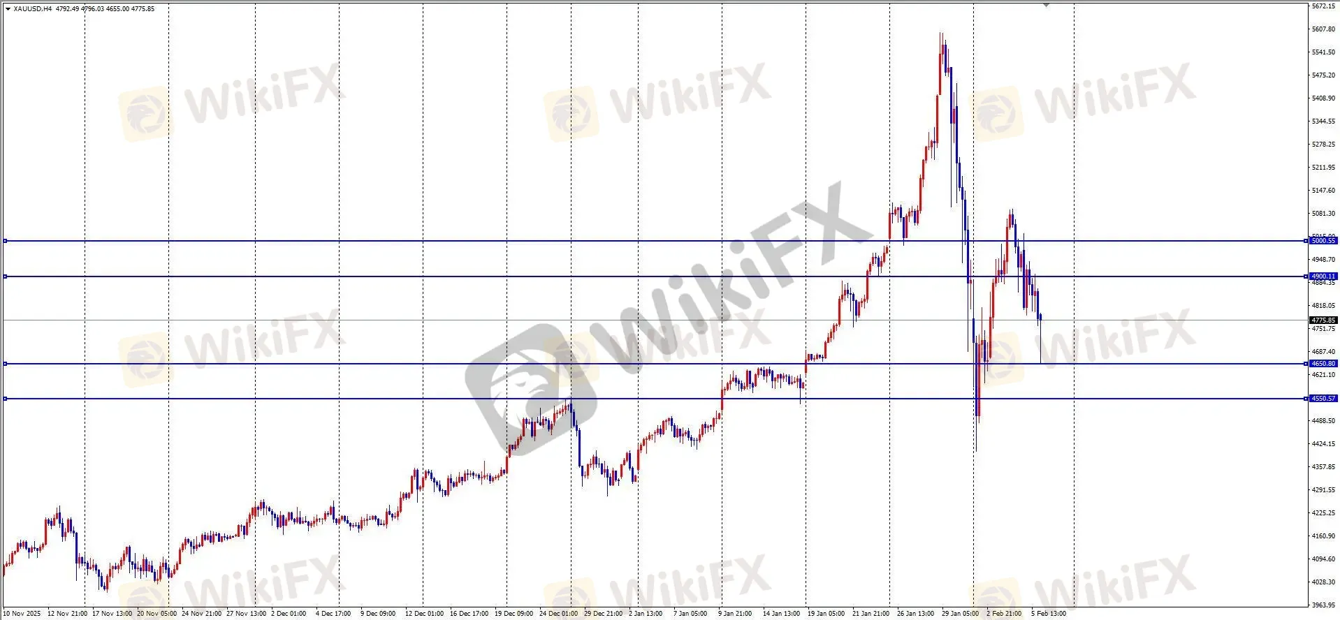 摘要:XAU/USD 昨日回顾与 ETO Markets 观点周四,ETO Markets 根据 M5 模型进行短线操作,于黑屏时段第二波成功捕捉多单盈利。日内建议的 4690 附近多单未入场。昨日金价亚盘跳空高开,于前一日高点之 61.8% 回调位受阻后快速回落,下破前低至 4788 后企稳。欧美盘以震荡为主,美盘反弹后快速下行创日内新低 4759,全天波幅约 2644 点,日线收出带上下影线的阴线,