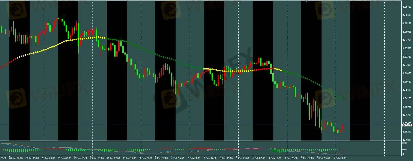 H1 趋势线颜色维持绿色。建议等待价格回调至趋势线附近再寻机入场空单,保护性止损可设于 1.376 附近,盈利目标为开仓价下方 60 点,或趋势线转红时平仓。