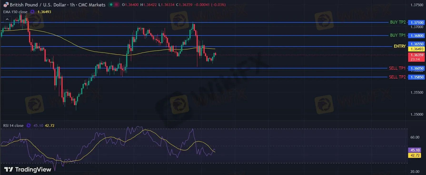 在 1.3655 之下,看跌,目标价位为 1.3605 ,然后为 1.3585 。