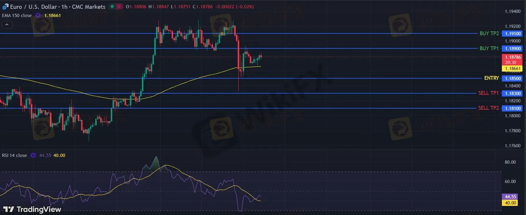 在 1.1850 下,看空,目标价位定在 1.1830 ,然后为 1.1810。