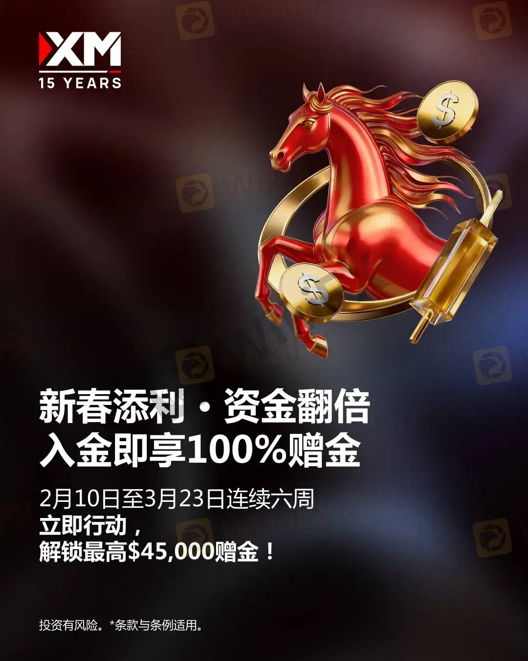 摘要:行情波动加剧,资金弹性决定你的出手机会。XM入金赠金福利重磅上线,以实质性回馈,为交易火力加码。活动时间2026年2月10日至3月23日,为期6周。每周最高$7,500,累计高达$45,000!每周仅需交易5手,无论新手还是活跃交易者均可参与,解锁更多交易助力。入金赠金可有效提升可用保证金,在稳健风险管理前提下,让交易布局更灵活、应对市场更从容。机会难得,立即开户,抢先布局!