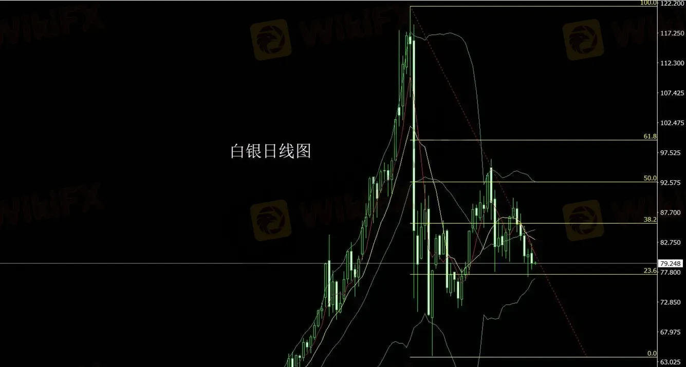白银昨日冲高后明显回落,日线留下较长上影线,说明高位存在一定抛压。