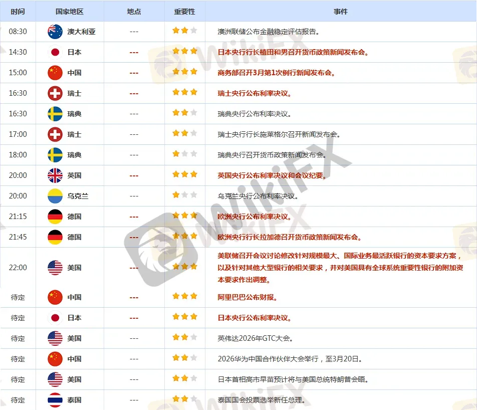 数据方面,美国2月PPI环比上涨0.7%超预期。市场正关注本周欧洲央行、英国央行和日本央行的利率决议。