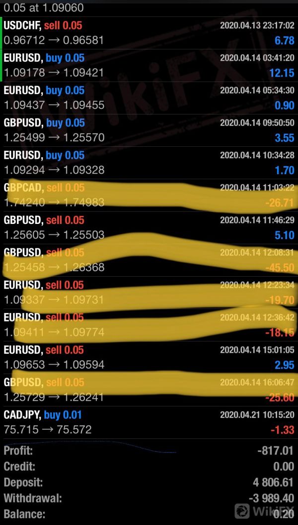 Event recap The complainant noticed the irregularities of OctaFXs platform on April 14th. When he woke up in the morning to check the trading results, he found that the platform did not execute his limit order at all when the market situation had been obviously in his favor. He immediately sent an email to the platform about the matter and reset the price of the limit order, but the platform did not responded. Later, he traded EUR/USD and GBP/USD on the platform, but the market was rising. The investor continued to send emails to the platform, hoping that the platform would execute his orders at the limit level he set, so he could keep all his positions, but again the email was not answered.