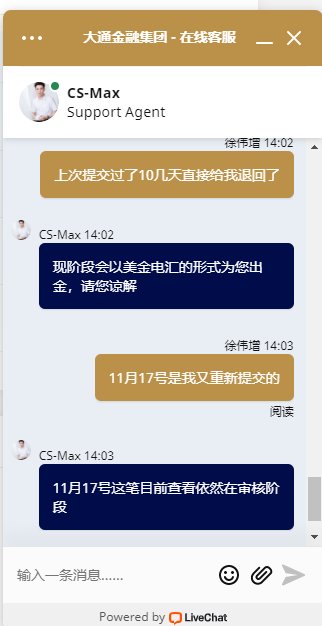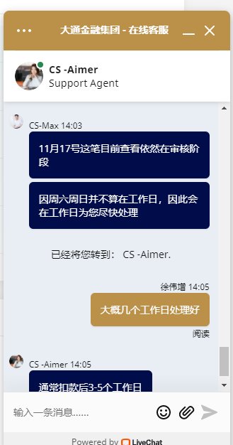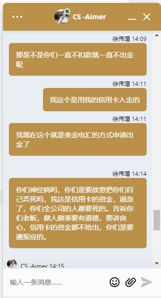 我是2021年10月25日出金一笔4809的,11月1日出金一笔18341.44的全部又给我退回了还是一直拖着不给处理 我可是信用卡入金的还有没有点良心