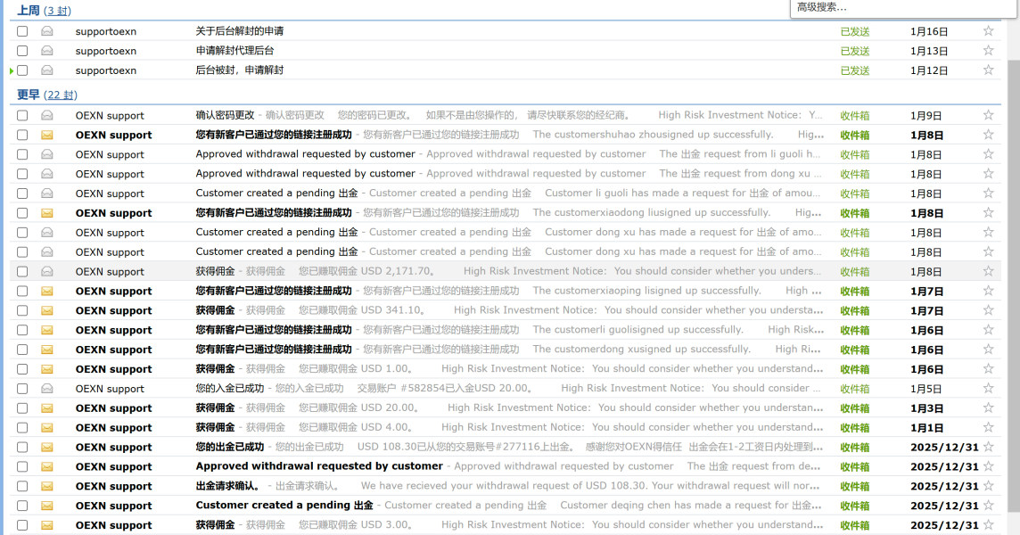 外汇平台oexn随意封代理后台,不给出金,玩失踪