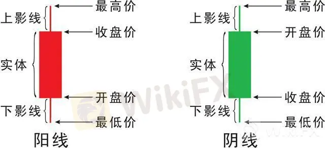 K線圖,是表明當天交易幅度的形式。白色長方形表示價格上漲,黑色長方形表示價格下跌,長方形的上線和下線分別表示-開盤價和-收盤價。註釋:在A股市場中,我們是用綠色表示價格下跌,紅色表示價格上漲(不同的市場會有不一樣的表示),在-皇-瑪-外-匯平臺的MT5可以根據自己的愛好設置修改顏色。