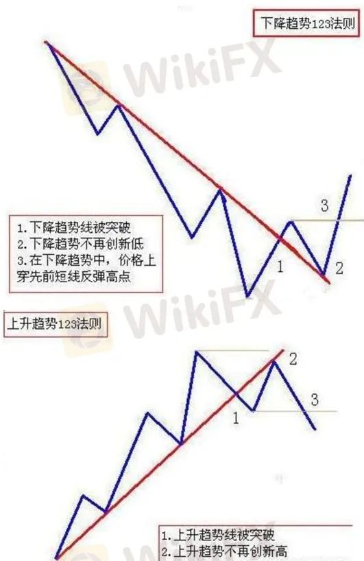 123法則是相當於道氏理論對於趨勢發生轉變的定義,包括: