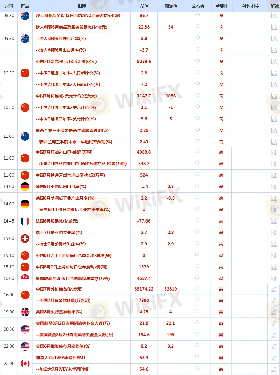 CWG Markets市場資訊2025年8月7日(週四):