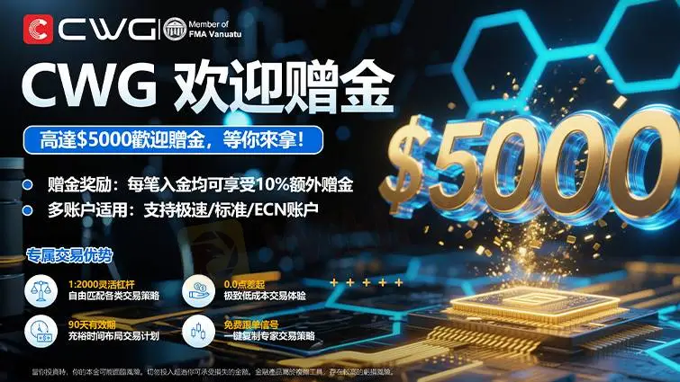 現在加入CWG,最高可獲得$5000的歡迎贈金,額外享受10%的贈金獎勵! 無論您是初入市場的新手,還是有經驗的交易者,CWG為您提供多帳戶選擇,包括極速、標準及ECN帳戶,全面支持不同交易需求。