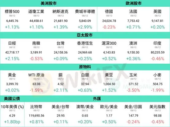美國CPI資料公佈後,美國四大指數受惠市場降息預期行情而進行大漲。不過我們見到公債市場表現並未同步上行(降息有利公債價格上漲、收益率下降),美國十年期公債仍上漲1.80bp。