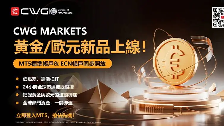立即行動,搶先體驗:現在就注册登入MT5,立刻體驗黃金/歐元全新產品,為您的交易組合添磚加瓦! CWG Markets為您提供穩定、透明且高效的交易平臺,助您在全球金融市場中穩步前行。 趕快加入,抓住屬於您的交易機會!