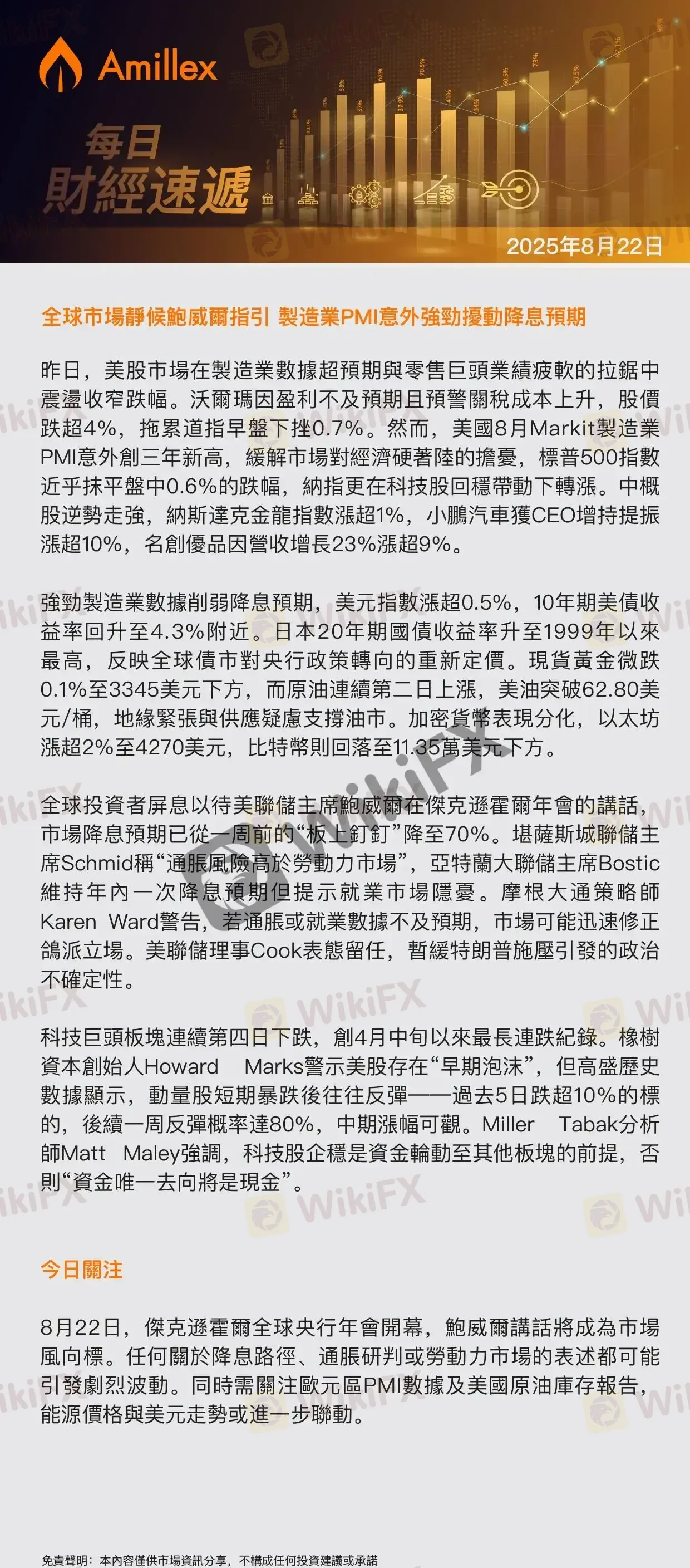 Amillex每日匯評:全球市場靜候鮑威爾指引 製造業PMI意外強勁擾動降息預期