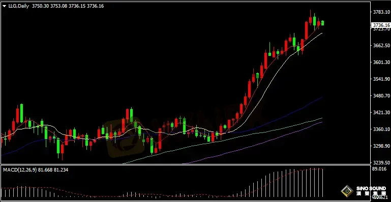 摘要:昨晚美國經濟數據公佈後,美股三大指數持續回落,美元指數走強,現貨黃金先行回落整理,隨後回升形成區間盤整,金價最終報收3749.12美元/盎司,上漲0.35%;現貨白銀最終報收45.161美元/盎司,創2011年以來新高,昨日大漲2.91%。今日亞市現貨黃金開盤在3750.30美元/盎司,早盤金價維持區間振盪,最高至3753.08美元/盎司,最低3735.23美元/盎司,目前金價下跌0.35%,筆者