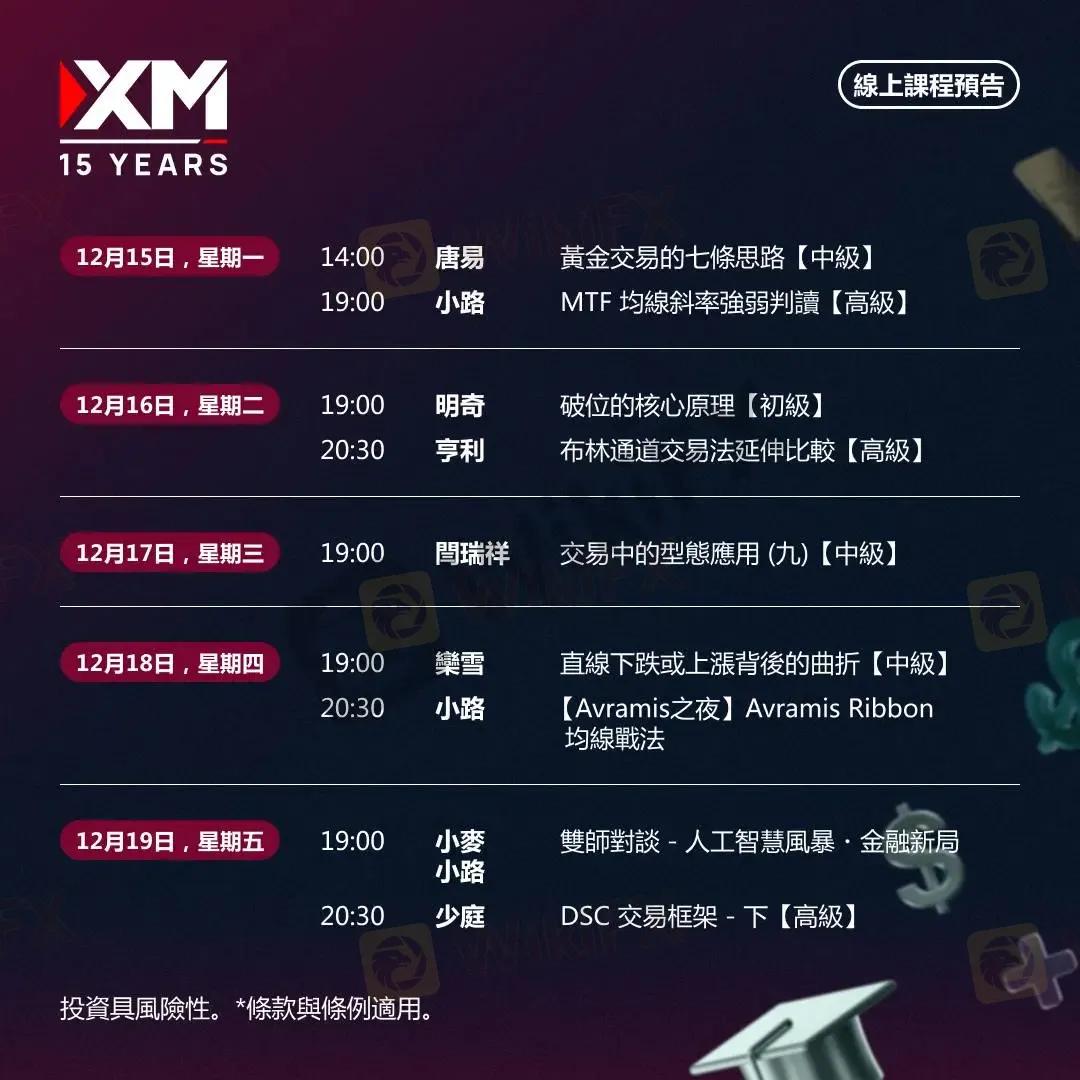 |XM| 中文線上直播講座,下週預告(12/15-12/19)