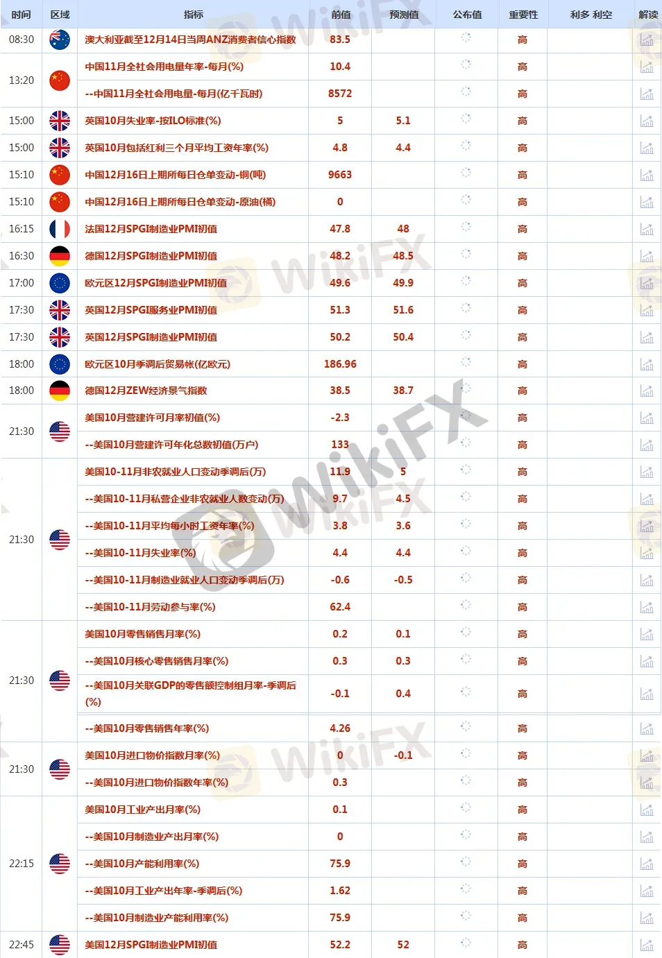 摘要:CWGMarkets市場資訊2025年12月16日(週二):匯訊摘要:週一,美元指數震盪下行,盤中一度跌近98關口,隨後收復部分失地,最終收跌0.13%,報98.28;基準的10年期美債收益率最終收報4.181%,對美聯儲政策利率敏感的2年期美債收益率收報3.516%。現貨黃金在本周一(10月15日)經歷了衝高回落的劇烈波動,由於市場對美聯儲降息的預期以及美元匯率的變動,現貨黃金一度逼近4350美